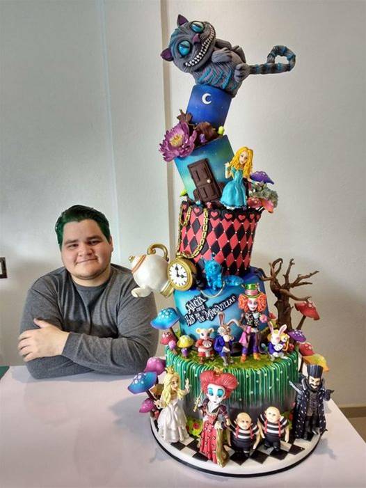 🎂🐇 Pedro Sequera's Alice In Wonderland Cake is a magnificent creation that takes you on a whimsical journey through the beloved tale. 🎩✨ With his artistic skills and attention to detail, Pedro has crafted a cake that captures the enchantment and surrealism of Lewis Carroll's masterpiece. 🍰🌺🍄 Layers of moist cake are swirled with vibrant colors, reminiscent of Wonderland's vibrant landscapes. 🌈🌼🍃 Delicate sugar flowers bloom on top, adding a touch of elegance to the whimsical design. 🌸🌿🌺 But what truly sets this cake apart are the edible figurines meticulously sculpted to resemble Alice, the Cheshire Cat, Mad Hatter, and other iconic characters.