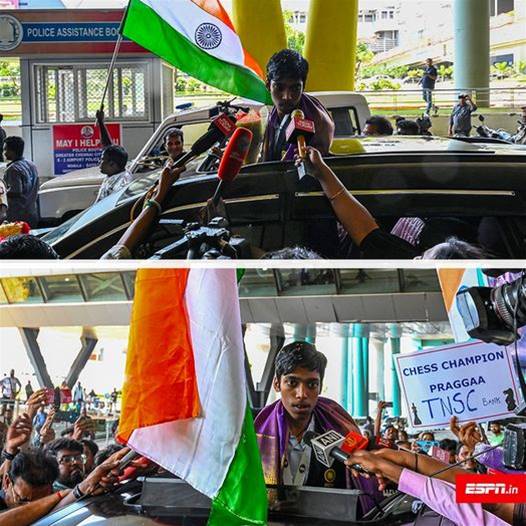 Praggnanandhaa returns home after his impressive performance at the Chess World Cup! 🏆 Despite being the runner-up, he showcased incredible skills and determination throughout the tournament. 🤩🌟 People are eagerly awaiting his arrival, ready to celebrate his accomplishment and show their support. 🎉🎊 The young chess prodigy's resilience and talent have inspired aspiring players around the world. 🌍🙌 His achievement marks another milestone in his promising career, and everyone is excited to see what the future holds for this exceptional talent. 🏅🔥 Praggnanandhaa's journey continues, and there's no doubt that amazing opportunities lie ahead for him! 💪💫