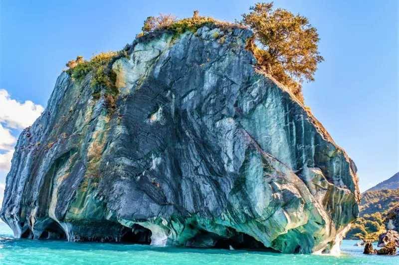 Dubbed as the most beautiful cave network in the world, Cuevas de Marmol (Marble Caves) is a 6,000-year-old sculpture hewn by the crashing waves of Lake General Carrera of Patagonia in Southern Chile. Also called the Marble Cathedral, the intricate caverns are part of a peninsula made of solid marble surrounded by the glacial Lake General Carrera that spans the Chile-Argentina border.